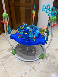 "Stazione saltellante" per bambini tra i 6 mesi e gli 11 Kg di peso. Il sostegno ruora di 360 gradi, l'altezza è regolabile in base alla crescita del bambino, i vari giochi lo intrattengono piacevolmente. E' sicurissima, e la condizione è molto buona.