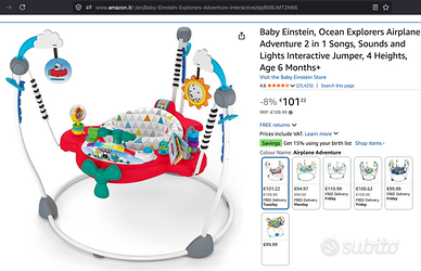 Acquistato lo scorso ottobre e molto apprezzato dal piccolo, ma ora che ha iniziato a camminare non gli interessa più molto. Funziona perfettamente, è perfettamente pulito, completo di tutte le parti originali e della confezione originale, con 3 batterie AA incluse.