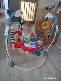 Il bambino decolla ed esplora con l'avventura dell'aeroplano Ocean Explorers 2 in 1, con il ponticello e le attività di Baby Einstein. Il bambino vola sull'aereo e vive un'avventura multisensoriale con oltre 20 canzoni, suoni luminosi sul seggiolino regolabile in altezza, in 4 posizioni e girevole a 360 gradi. Il bambino può controllare le canzoni e le luci del jumper mentre rimbalza.