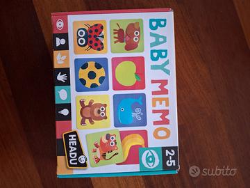 Baby memory composto da 24 coppie (48tessere) della marca Headu. Tessere leggermente graffiate per l uso come da foto. Ma ancora ottime per il gioco.