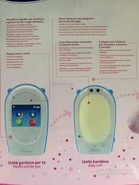 Il baby monitor è fornito di Microfono e speaker per ascoltare e parlare con il bambino in ogni momento. Display touch a colori. Ninne nanne, Luce notturna. Collegamento infrarossi per comandare a distanza il pannello.