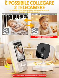 - Attivazione automatica dello schermo quando il baby monitor rileva un suono.