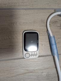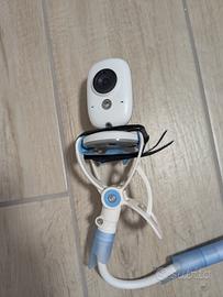Baby monitor con schermo a colori e visione notturna, microfono e possibilità di emettere musiche rilassanti attraverso la telecamera. Telecamera con staffa aggiuntiva per l'installazione sul lettino.