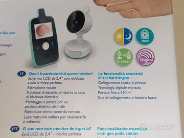 Guarda e ascolta il tuo bimbo da qualsiasi punto della casa. Funzione di batteria di backup in caso di blackout. Ascolta il tuo bambino con un audio chiaro. Schermo a colori da 2,4" ad alta risoluzione. Visuale notturna a raggi infrarossi automatica. Le spie LED indicano quando l'unità è connessa ed entro la portata massima. Nuovo, mai usato. Aperta la confezione per fotografare il contenuto.