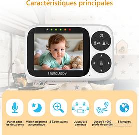 HelloBaby Baby Monitor, 3,2" Schermo IPS babyphone mit kamera, Senza WiFi, Visione Notturna, Pan-Tilt-Zoom, Allarme Ninna Nanna e Portata di 1000 Piedi