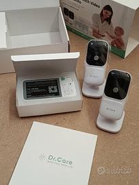 Baby monitor completo composto da monitor da 3.5 pollici con risoluzione 720P, 2 telecamere, cavi e manuale d'istruzioni.