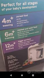Robot per cucinare i cibi al vapore, tritare e preparare omogeneizzati. Ha un timer automatico da impostare per trovare la pappa già pronta completa dei vari passaggi.