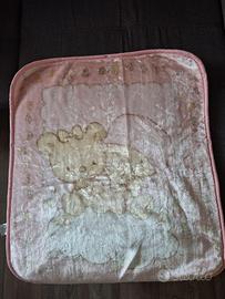 Coperta Nazareno Gabrielli che diventa un sacco a pelo per il neonato con cerniera centrale e bottoni a pressione per avvolgere la zona dei piedi e della testa.