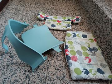 Baby set stokke colore azzurro con set cuscini sempre stokke fantasia colorata. Usato ma come nuovo