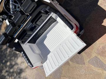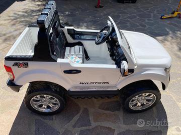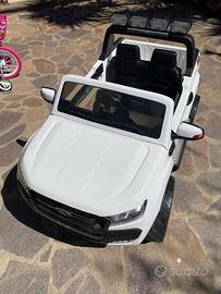 Bellissima Babycar Auto per Bambini Ford Ranger Wildtrak Luxury colore bianco. È un' auto per bambini con miglioramenti di tutti i tipi come lo schermo MP4 per riprodurre musica o video, lettore musicale Bluetooth, controllo del volume ed effetti sonori. L'auto elettrica per bambini ha un sedile a due posti per due bambini di 3-4 anni o per uno più grande fino a 7-8 anni. È dotata di fari e copertura illuminata. I suoi 4 motori gli conferiscono la massima trazione 4x4.