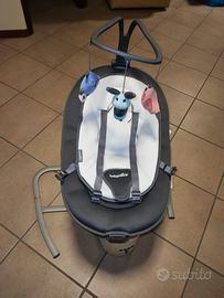 Sdraietta dondolo neonato elettrico, bianco e grigio, diverse inclinazioni, riduttore primi mesi rimovibile per adeguare la seduta alla crescita, musiche rilassanti