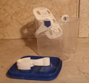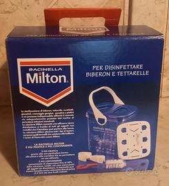 bacinella marca milton per disinfettare accuratamente ciucci, biberon, tettarelle e altri piccoli prodotti per bambini; non come il prodotto originale, qui manca la spazzola tra gli accessori che può però essere sostituita con una spazzola accuratamente lavata e disinfettata.