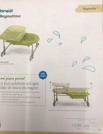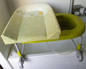 Bagnetto Brevi con il fasciatoio adatto per chi ha la vasca. Estremamente comodo. In buonissime condizioni. L'angolo del fasciatoio è un po' usurato. Regalo il poggia bebè che mi è stato utilissimo, comprato separatamente per potere appoggiare il bambino nella vasca in tutta sicurezza.il Bagnetto in foto non è stato adattato alla vasca, solo appoggiato per fare la foto,