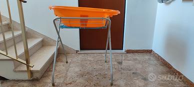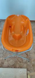 bagnetto in buonissime condizioni di colore arancione del brand OKBABY. Il supporto è in metallo con tappetino in plastica salva goccia, con ottima stabilità.