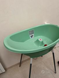 OKBABY Kit Vaschetta Bella e Cavalletto di Supporto per il Bagnetto del Neonato, 0-12 Mesi, Vaschetta Verde