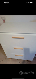 Bagnetto Fasciatoio a tre cassetti Bagnetto MIA Azzurra design Bagnetto comprensivo di: 🚼 Materassino fasciatoio bianco, con tasca per fissaggio sul coperchio Coperchio ribaltabile, con sicurezza per blocco in posizione verticale 🛁 Vaschetta interna Quattro piedini in legno Colore Bianco-Naturale Dimensioni bagnetto cm. 76x49x98 h. Acquistato ad Aprile 2024