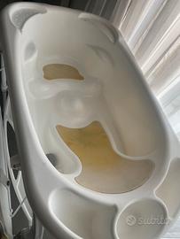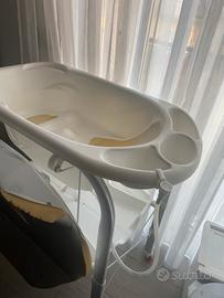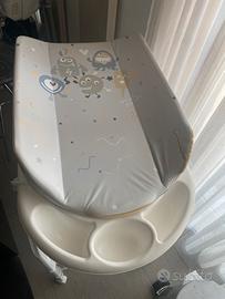 Bagnetto Cambio Cam con morbido fasciatoio dotato di sistema antiribaltamento, vaschetta baby bagno inclusa, piani porta-oggetti. Età di utilizzo da 0 a 12 mesi circa. Chiusura ultracompatta. Buone condizioni: il
