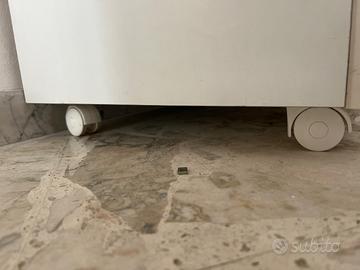 Cassettiera per fasciatorio, con 3 cassetti e vano interno con vaschetta bagnetto. 4 ruote piroettanti di cui 2 con freno. Dimensioni 76cmx 49cm x 89cm La marca è azzurra. Nuova su listino costa circa 300€.