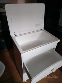 Completo di materassino fasciatoio, vasca/bagnetto, con scarico (valvola aperto/chiuso) - tappo, tubo.