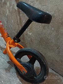 Bicicletta balance per bambini dai 2 anni, con freno. Ha vari segni di usura ma è ben funzionante, anche il freno. Il sellino e il manubrio si possono alzare o abbassare all' occorrenza. Consigliata dai 2 fino ai 4 anni.