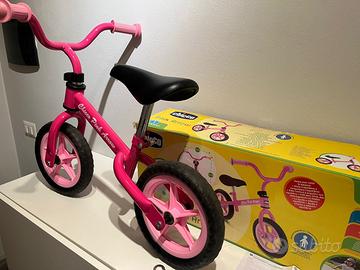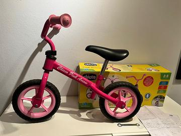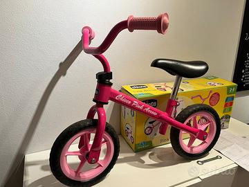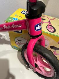 Bicicletta senza pedali per bambina Marca Chicco, Pink Arrow. Colore fucsia Manubrio e seggiolino regolabili, max 25kg2-5 anni Presenta segni su telaio come da foto Completa di scatola ed istruzioni Consegna a mano, non smontiamo