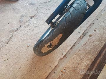 ha il copertone posteriore da sostituire.