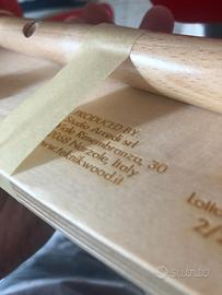 Multistrato di betulla e massello di faggio con finitura trasparente. Sellino regolabile in altezza dai 28 ai 46 cm per adattarsi alla crescita del “pilota”.