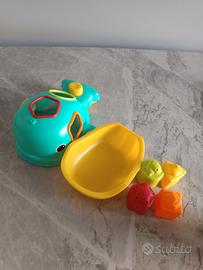 balena galleggiante per inserire forme e pulsante per spruzzare acqua dalla testa