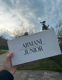 Ballerine da bambina firmate Armani Junior, numero 33, in colore blu scuro (quasi nero), con fiocchetto e iconico logo in metallo applicato sulla punta, suola interna traspirante e made in Italy, sinonimo di qualità e comfort. Dotate di scatola originale con etichetta identificativa.