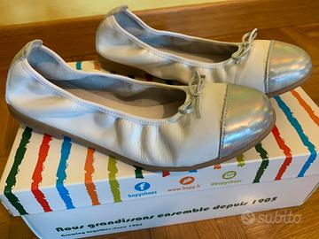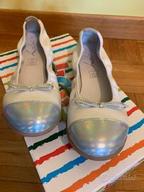 Vendesi ballerine bambina color bianco-argento taglia 35 pari al nuovo, perfette per cerimonie