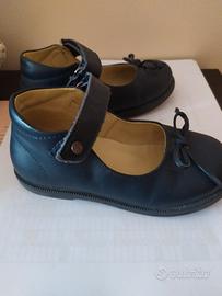 Ballerine bambina blu misura 24. La tomaia in morbido vitello è decorata con fiocchetto sulla punta, mentre il cinturino con velcro assicura una calzatta veloce e confortevole. Fodera interna in pelle e suola in gomma con disegno carrarmato, perfetta per ogni superficie.