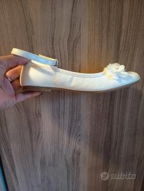 Ballerine marca bata cole avorio n.34 bambina con piccoli fiorellini di tessuto e paillettes molto delicate dello stesso colore.