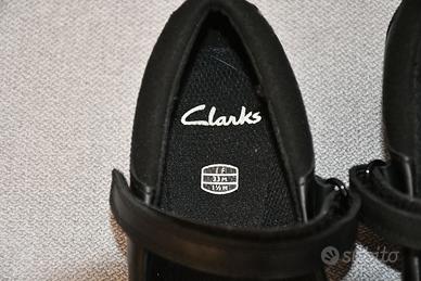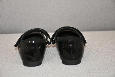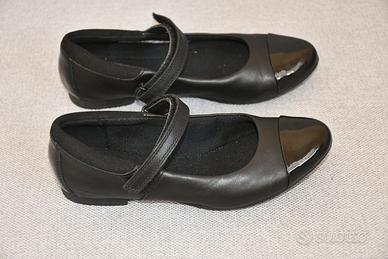 Ballerine eleganti per bambina, Marchio Clarks, tomaia in pelle, colore nero, chiusura a velcro, misura 33