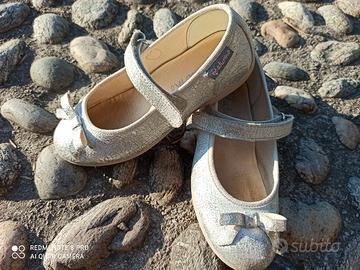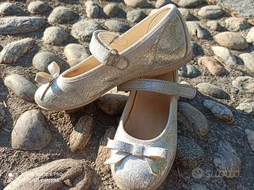 Ballerine Naturino argento glitterate,con fiocchetto. Comode e belle.