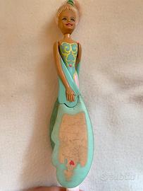 Ballerine Volanti (Sky Dancers) prodotte da Galoob negli anni '90 e distribuite in Italia da Gig. Bambole da collezionismo. Set di due bambole: - Bambola Ciclamina con abito rosa e verde. - Bambola Petula con abito azzurro e rosa. Perfettamente funzionanti. Buone condizioni. Evidenti segni del tempo e di usura (v. foto). La bambola viene inserita in una base (lanciatore) e, tirando un cordino, viene sparata in aria, roteando come un elicottero.
