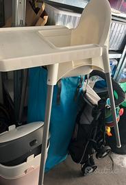 Passeggino richiudibile totalmente un lettino da campeggio due ( maialino)per pannolini Una sedia dell’Ikea, molto comoda si può togliere il pezzo davanti , un lettino della foppa Pedretti come nuovo Seggiolino da auto tutto usato ma tenuto bene Vendo anche singolarmente prezxo dq concordare