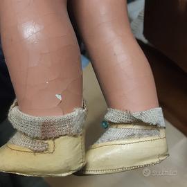Bambola in cartapesta, anni 30/40. Parti danneggiate da restaurare. Altezza 50-60 cm. Con scatola in cartone originale