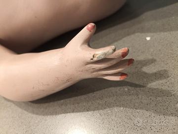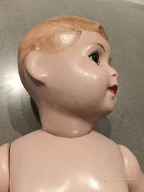 bambola d' epoca dipinta a mano - Labbra rosse. - Braccia e gambe articolate.