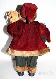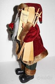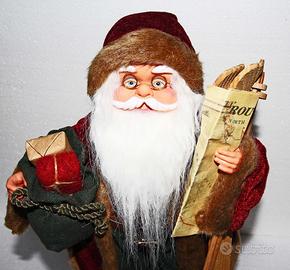 Privato vende BAMBOLA DI BABBO NATALE elegante e rifinita nei dettagli con volto molto realistico ed espressione sorridente. Con di barba in pelo sintetico, occhiali dorati in filo metallico, abito elegante in panno dai colori vivaci con folta pelliccia sintetica sui bordi, cappello pendente con sonaglio, sacco doni pieno di pacchi regalo, sci in legno, cartina geografica in carta. Corpo e scarpe in plastica.