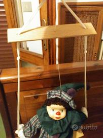 bambola - pagliaccio con testa in porcellana , seduta su altalena da appendere. Mai esposta. ? 15
