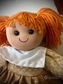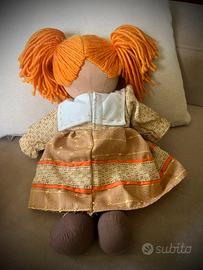 Bellissima bambola Pigotta MyDoll di stoffa imbottita, con vestitino country ricamato e bavero bianco alla marinaretta. Altezza 32cm. Come nuova, mai usata.