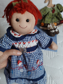 Vendo questa simpatica bambola di stoffa regalo adatto anche per i più piccoli in quanto morbida , con vestitino e scarpe di ricambio, il tutto di ottima fattura, pulito ,non scucito né sporco. Adatto come regalo. Posso spedire a carico dell acquirente.