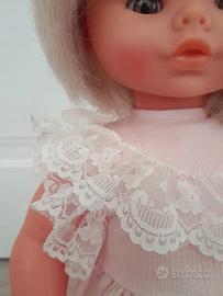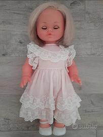 Bambola giocattolo Con vestito rosa chiaro e pizzo bianco Scarpine bianche che si tolgono Chiude gli occhi quando si mette supina Altezza: 45 cm