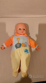 Vendo bambola con testa e mani in plastica ed il resto in tessuto imbottito, capelli gialli in lana, vestito viola, lunghezza circa 30 cm. Altra bambola con testa mani e piedi in plastica, il resto del corpo in tessuto imbottito, senza capelli, tutina gialla e arancio, lunghezza circa 34 cm, tenute bene, 5 euro l'una.