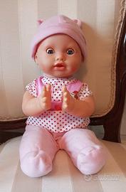 Bambolotto interattivo, schiacciando il pulsante sul petto si alternano canzoncine in inglese, versetti e brevi frasi. Batte le mani muove la testa ed apre e chiude gli occhi. In ottime condizioni