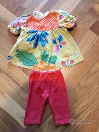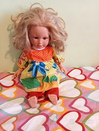 Bambola della marca spagnola Llorens alta circa 40 cm., arti in vinile, corpo in stoffa. Con il completo estivo che indossa composto da leggins e maglietta