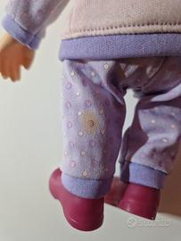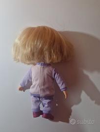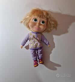 Vendesi simpatica bambola di Masha, la protagonista del cartone animato "Masha e Orso". Questa versione indossa il suo tenero pigiama viola con decorazioni di orsetti e pois, completo di scarpine integrate. La bambola è in buone condizioni generali e i capelli sono folti. Come visibile dalle foto, è presente una piccola macchia di usura/colore sulla parte posteriore della gamba sinistra (pantaloni).