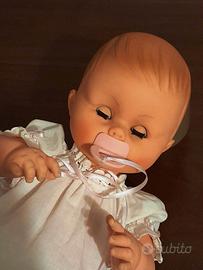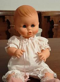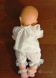 Bambola Migliorati anni 60 perfettamente conservata con vestitino e scarpine, sonaglio sulla schiena, lunghezza circa 42 cm