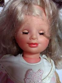 Vecchia bambola della MIGLIORATI degli anni 70 o 80 del 900 a batterie , ma inserite non si sente solo rumore di un meccanismo . vintage da collezione visto e piaciuto . le braccine sembrano bloccate , non sforzate per timore di romperle .