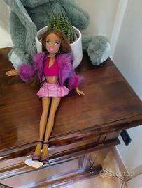 Bambola My Scene Barbie della Mattel del 2002. In ottime condizioni. Alta circa 30 cm. Si chiama Madison.. Indossa un outfit alla moda. Capelli castani lunghi. Outfit rosa con una giacca di pelliccia viola. Scarpe con tacco rosa. Capelli da sistemare